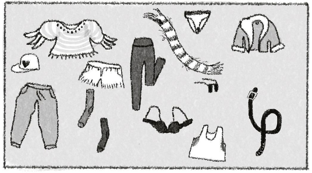 K: Okay, this is also related. In the Berkeley Co-ops we had free piles, like a whole room in the co-op house that was full of free stuff. Most of it was discarded clothes. One day I was like, what if I didn't own a wardrobe? Because that's like a whole bunch of sentimentality, we associate our clothes with identity. And I was like, what if I used the free pile as my closet and I never kept any of the clothes?